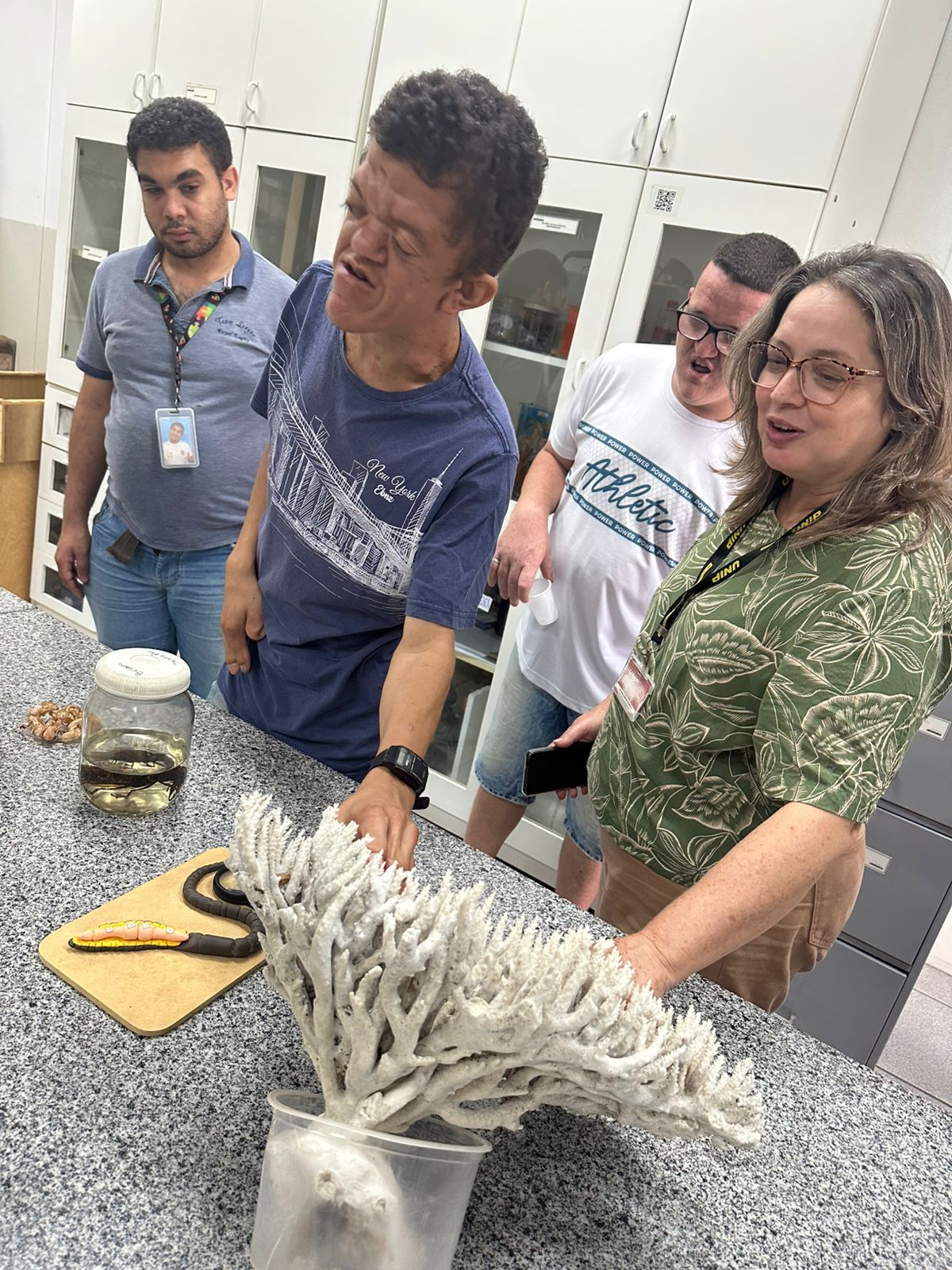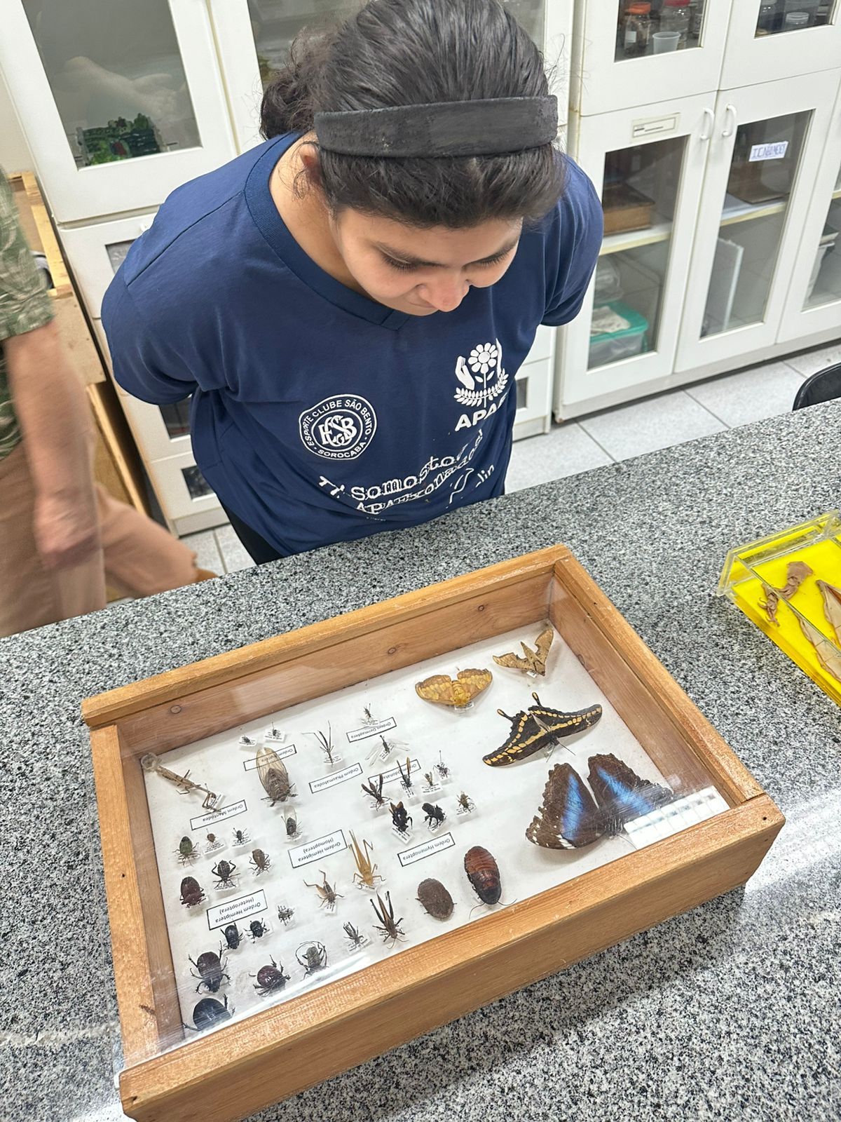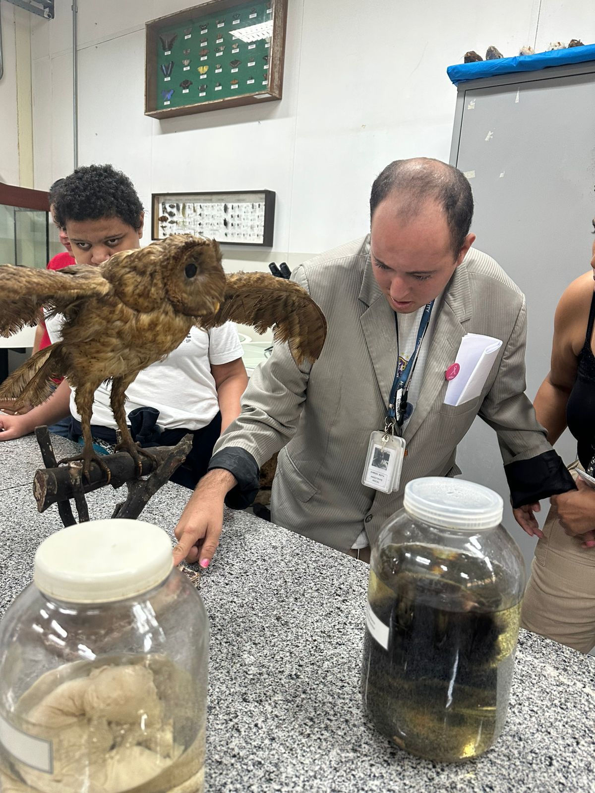 Os alunos são recebidos por uma coleção que vai de pequenos invertebrados à vertebra de uma baleia e a variedade impressiona aves coloridas, répteis, mamíferos e até insetos que parecem saídos de um livro de ficção científica. Os alunos puderam ver de perto os detalhes dos animais, observar suas estruturas e aprender sobre seus habitats e comportamentos.