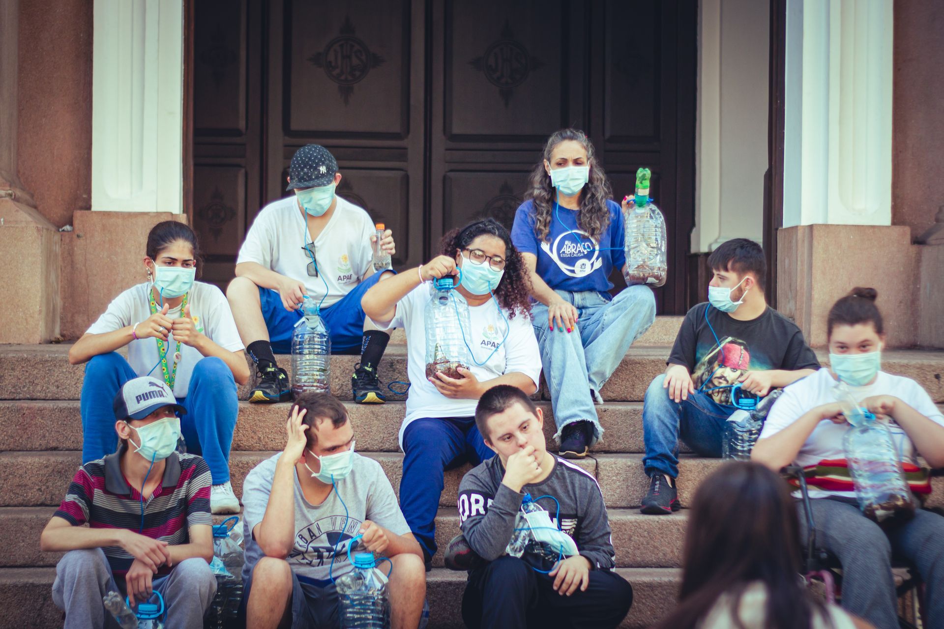 performance impactante. O evento, que aconteceu nos bairros Vila Progresso e Centro, mobilizou os alunos em um passeio pelos espaços públicos, onde utilizaram um respirador nomeado “Objeto Sustentável”. Este artefato faz referência à obra